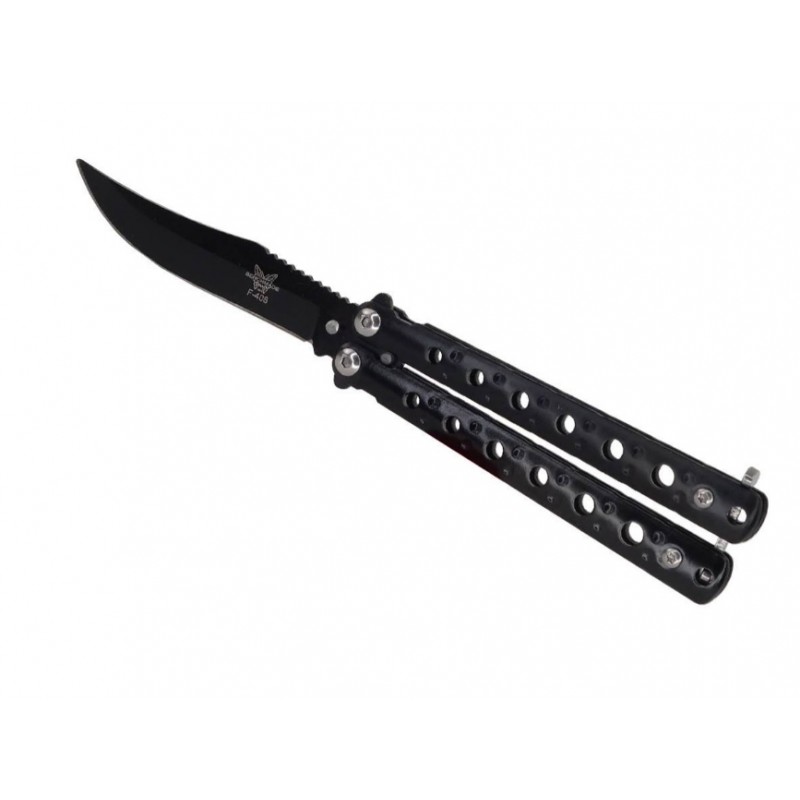 CUCHILLO NAVAJA MARIPOSA MILITAR NEGRA MANGO ALUMINIO Y HOJA DE ACERO DE 7,0 CM