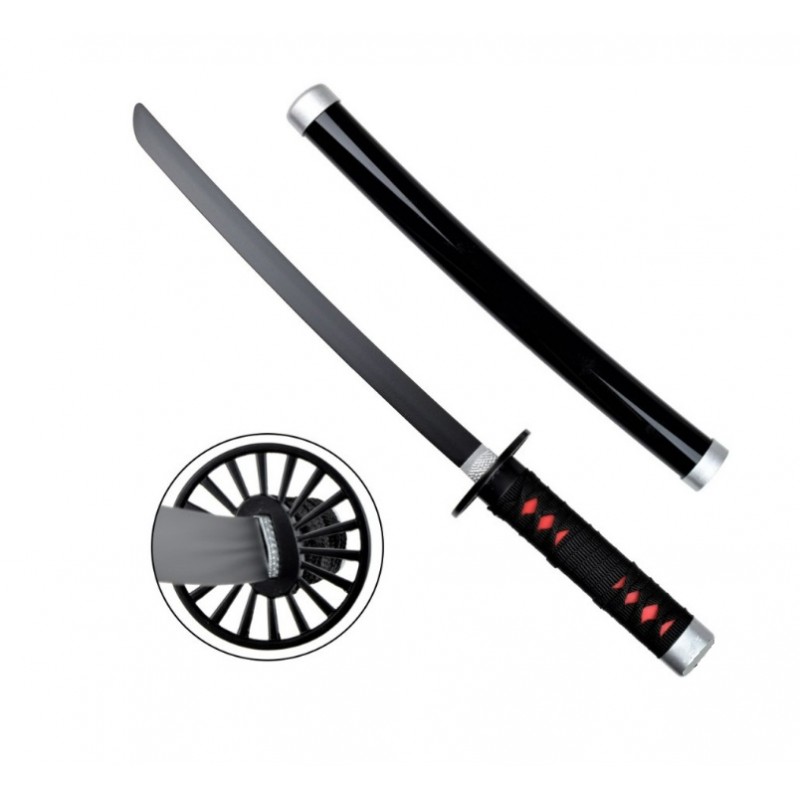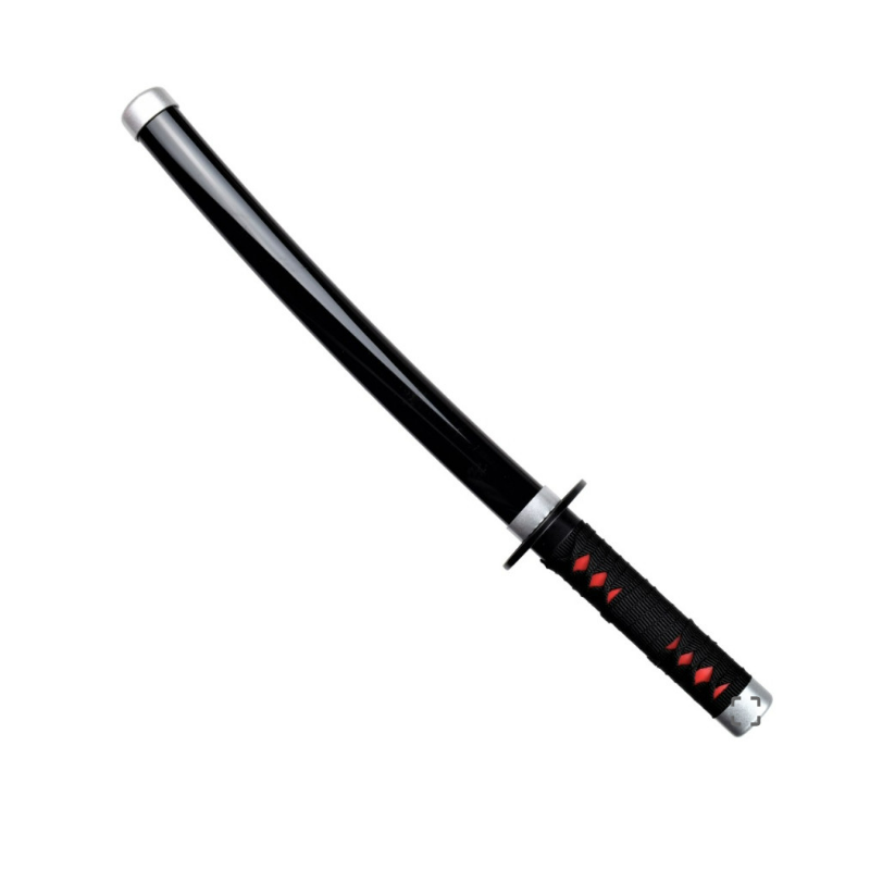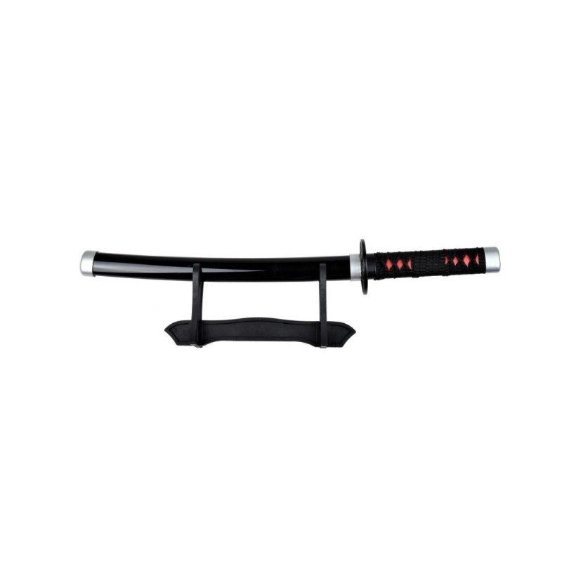 Mini Katana Kanao Tsuyuri de Demon Slayer. Réplica de 40cm de hoja en acero acabado rosa con filo satinado, empuñadura con cordón negro y polipiel rayada rosa con funda negra y detalles plateados.